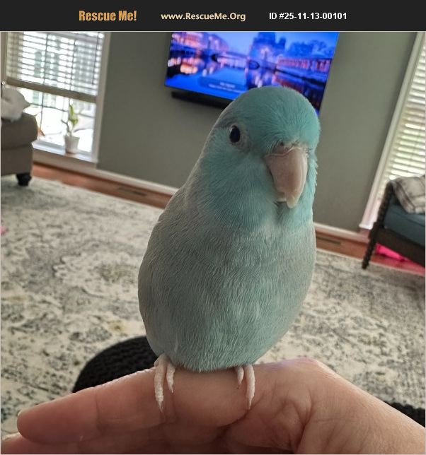 Pacific Blue Parrotlet. Approximately 5 years old. Needs more time out cage than we can offer now. Smart, performs some tricks, repeats phrases, and follows commands. Can be noisy at times. Needing to rehome due to busy lifestyle and caring for elderly family member.