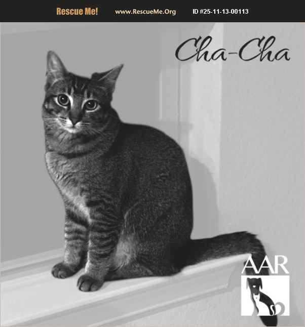 Cha-Cha was part of a litter born outside to a neighborhood stray. The rescuer brought the momma and babies inside and kept them safe. Cha-Cha is readjusting to being back in our shelter. She had a happy home but her person was moving and couldn't take her with him. In her previous home, Cha-Cha was affectionate, got a long with a calm, small dog, and loved looking out windows to watch the birds. We're hoping she gets a second chance for a good home soon!