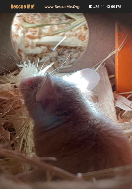 White, Red eyed, male Fancy mouse. Vladimir has a Respiratory infection, I can't afford to help him and i've had a very hard time finding a vet that even works with mice in baldwin county. Please Email or Text me for information or to adopt Vlad- i won't answer unknown calls.