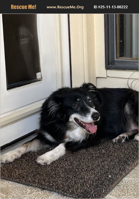 Predominantly Border Collie (very fluffy), female, spayed, about 55-60 lbs, has a very gentle and easygoing personality, loves all people, good with other dogs after appropriate intro's, don't know about cats but does chase squirrels, fully housebroken, will use dog door, crates easily (she comes with a large wire crate), appears very healthy but was found as a stray in a gated apartment complex yet she is a bit overweight. 'Seems' to have been well-cared for. Has received rabies vaccine.