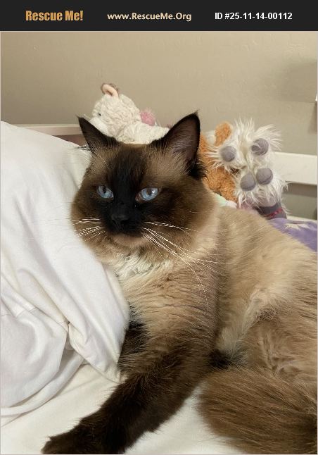 Sweet male Ragdoll!! He is indoor only and not fixed. He doesn't spray. He loves to lounge most of the time. He is very easy going. He turns 2 on the 20th. He just had a wellness check up and everything is great. We are dealing with some allergies and eczema flares with 2 of our children so it's best we find this sweet boy a new home.