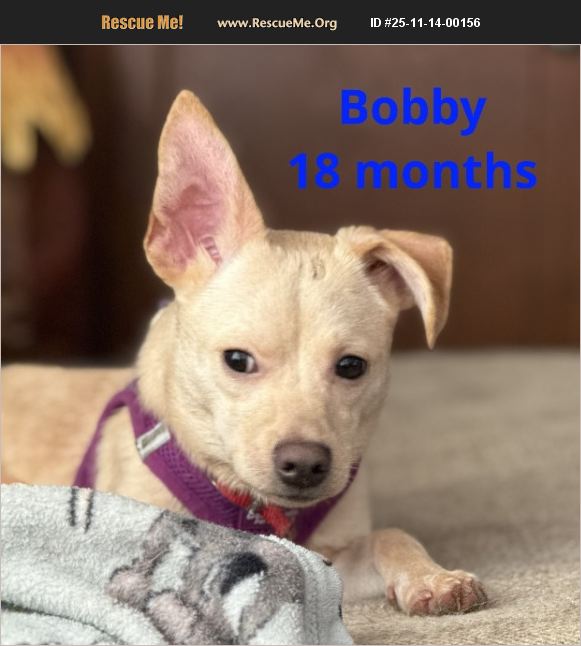Meet Bobby! Bobby is a 1.5-year-old male Chihuahua/Jack Russell mix weighing about 13 lbs. With his light tan coat and bright, expressive eyes, he's as adorable as he is spirited. Bobby came from a severe hoarding situation, but unlike many of his friends, he stepped into rescue life with a surprising amount of confidence. He sees himself as the little protector of his group - always alert, always watching, and definitely the most vocal of the bunch. If something needs to be announced, Bobby will make sure everyone knows! Though he's confident, Bobby is still learning how to live like a normal dog. He is not yet housebroken, and we are actively working on it. In true small-dog fashion, he can be a bit stubborn, so patience and positive consistency will be key. Bobby does great with other dogs and cats and takes comfort in being part of a pack. He will approach people on his own terms but has already shown that he enjoys affection once he feels safe. His personality shines brightest when he feels understood and supported. Bobby is neutered, vaccinated, microchipped, and up to date on preventative care. If you're looking for a bold, lively companion with a big personality in a small body, Bobby might be the perfect match.