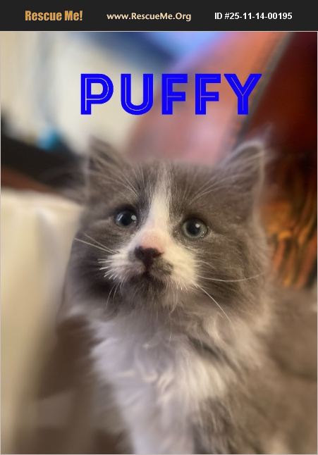 Puffy is a rescue kitten born around Oct 1, 2025, making him 6.5 weeks old at the time of posting. He is a real bundle of love who enjoys snuggling, getting petted, and playing with his brothers (he has two brothers and a foster-brother who are also available for adoption!). Puffy would very much like a forever home which already has at least one other cat or who would be willing to adopt a second kitten with him. Priority will be given to all-indoor homes and owners with prior experience owning cats. Email is our preferred contact method. Please give us an idea of what your household is like and why you are looking to adopt a pet when you contact us. Reminder, kittens can be a LOT of work! If you aren't sure you are up for it, lots of senior cats need your love too! Thanks for looking!
