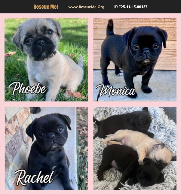 'Meet our trio of adorable pug girls, affectionately named after everyone's favorite TV friends: Monica, Rachel, and Phoebe! At 8-weeks old they are ready to bring laughter, love, and a little bit of Central Perk-level chaos into your life! All three girls are healthy, playful, and learning the basics of potty training. They've been socialized with other dogs, cats, and kids, and are ready to find families who will love them as much as we do! If you've been waiting for 'the one where you fall in love with a pug,' this is it.' Pug Girls is being fostered in Longmont, Colorado. *We require all adopters to come to Colorado to adopt. *We do not transport dogs.* You can view this wonderful dog at https://www.milehighcanine.org/post/dogs/pug-girls/. You can apply for our wonderful dogs at https://www.milehighcanine.org/adopt/adoption-application/.