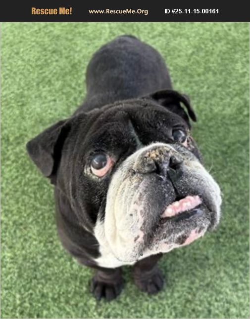 This adorable meatball, Bruno, is located in a high kill shelter in Castaic, California. LA shelters are in severe overcrowding conditions and are euthanizing young healthy dogs at an alarming right simply for SPACE!!! Please save this adorable guy. Transportation information is available. Name: BRUNO Animal Location: Castaic - X145 Animal ID: A5734679 Date Admitted to County Care: 2025-10-27 Availability Status: Ready to go home Primary Breed: ENG BULLDOG Primary Color: BLACK Sex: Male Size: MED Weight: 61.5 Age: 7 years 0 months
