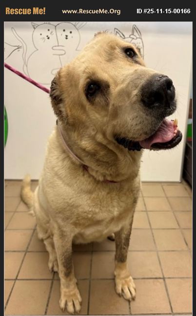 Luna, a beautiful, gentle giant is located In a high kill shelter in Castaic, California. LA shelters are in severe overcrowding conditions and are euthanizing young healthy dogs at an alarming rate!!! Please save Luna before it's too late. Transportation information is available. Name: LUNA Animal Location: Castaic - X113 Animal ID: A5469626 Date Admitted to County Care: 2025-10-26 Availability Status: Ready to go home Primary Breed: ANATOL SHEPHERD Primary Color: TAN Sex: Female Size: X-LRG Weight: 129 Age: 5 years 7 months