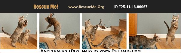 Angelica and Rosemary are fun, friendly and playful four-month-old, female, golden-eyed, torbie kitten looking for a loving guardian. Born July 8th, Rosemary and Angelica were raised in a loving foster home with their foster siblings Polydactyl kittens Ernestine and Polyanna. They would be happiest being adopted together or with one of their foster siblings or with her foster siblings. They can be adopted singly if you have a young playful cat at home. Rosemary and Angelica are well-behaved in the home, use their litter box perfectly, and both love jumping for a cat dancer or feather toy, or rolling with their toys! They are wonderful with people of all ages including children. They are very healthy, dewormed, treated with revolution, spayed, up-to-date on distemper and rabies vaccines, microchipped and virus-tested negative. To meet and possibly adopt Rosemary and Angelica, or any of their foster siblings please fill out an adoption application https://friendsofpetraits.com/cat-adoption-application/ After the application is complete, please contact [email protected] to schedule an appointment to meet them. Their adoption fee of $175 each (or $300 as a pair) benefits the Friends of Petraits Rescue. They are being fostered in Chicago's Andersonville neighborhood.