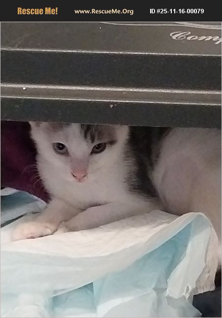Ophelia was born HETERCHROMIA into feral litter in wooded area on or near Sept 1 2025. Mom is Precious, Brother is Milo and Sister is Juniper. Ophelia is shorthaired White with Grey back and ears. She has 1 blue eye and 1 gold eye. Her entire litter was attacked by unknown predator, wounding all of them. Her Mom, Precious was able to save the 3 kittens by moving them to our barn. Once they were weaned Mark was able to catch the kittens, but not their Mom, though she still lives near our barn as a feral. Ophelia received a puncture wound to 1 shoulder, so we had a vet examine and treat her. Then once old enough, she got Rabies shot, Spayed and microchipped. Ophelia is very shy, but loves to be handled gently. She likes to sleep on dresser top or high shelf. She has gradually gotten over her trauma and is a sweet kitten.