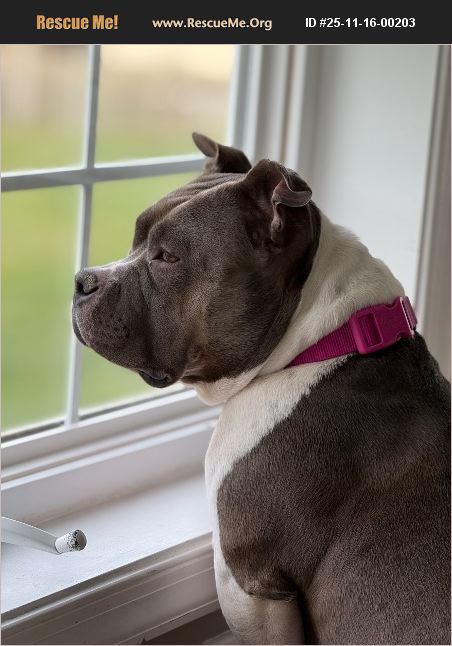 Aubrey will be 6 years old June 10th. We've had her since she was a pup as she was from a family breeder. I love Aubrey and she's very loyal but she has become extremely aggressive toward my cats. She also has become extremely aggressive towards visitors at my home. We have 5 children in our home but I do not recommend she be kept around other children. She has shown aggression towards other children that have visited. Aubrey is very strong and she would do best with someone who has time to walk her often. Due to her having severe breathing issues she can not be tied outside. During the summer months she can not be outside longer than 5-6 minutes at a time.