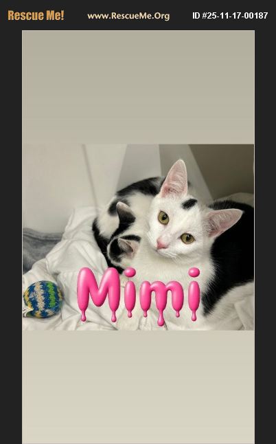 Houdini & Mimi are black and white kitties (Mimi has a spot on her head/female)(Houdini: Polydactyl/male) Houdini is a very sweet boy, and Mimi loves following in her brother's footsteps. She can be a little shy in new situations, but her playful side shines through once she feels comfortable. Both love to run, play, and explore together.