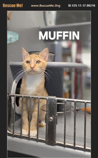 Meet Muffin, an adorable 4-month-old orange/white boy kitten. He's not as stern as his photo might suggest, but rather keenly observant. Muffin is simply keeping a watchful eye out for his most cherished companion. His playful spirit shines through once he feels secure. He also loves to cuddle and play with his brother Peanut!
