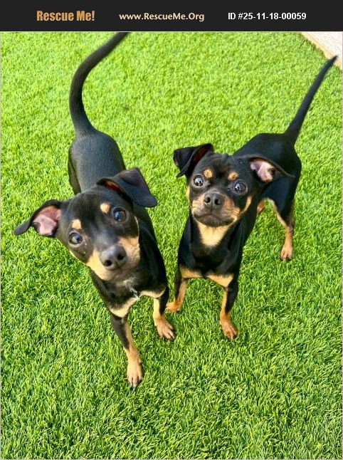 These two are truly inseparable - if you see one, the other is just a tiny trot behind. They play together, nap together, explore together, and basically live life as a two-pack team. Eenie - 4 months old The braver one! Confident, curious, and always ready for adventure. Eenie's outgoing spirit helps bring out the best in his buddy. Meenie - 1 year old A gentle, more timid sweetheart who relies on Eenie for courage. Once he trusts you, he melts into the cuddliest little lovebug. Together, they are the sweetest pair of snuggly lover boys who want nothing more than a warm lap, a soft bed, and a family who will cherish them both. If you're ready for double the joy, double the cuddles, and double the tiny Min Pin magic�'�| Eenie & Meenie are waiting.