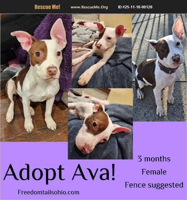 This animal is available to licensed rescue groups only. Please do not enquire unless with a licensed rescue group. Adopt Ava! 3mos Female Fence preferred She is abt 3 months old, 20lbs, and a pittie mix. She is a total sweetheart. She is smart, loveable, and curious. Good energy but not hyper. Doing well with crate training, potty training, and leash training, but will need to continue being taught. Loves to curl up at the end of the day and get some pets. Great with other dogs. Located in Columbus. Please apply at www.freedomtailsohio.com