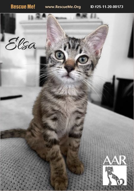 Whether this little kitten is snuggling in your lap, purring at your side, or trotting behind you to see what you're up to, Elsa will brighten your days with her sweet, playful spirit.