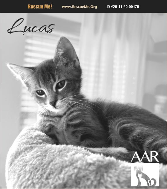 Lucas is a friendly, affectionate kitten who enjoys being petted, running after little cat toys, exploring, playing with his sister Sophia, and of course napping! Lucas has the cutest squeaky little meow and at bedtime he likes to sleep curled up next to Sophia on his foster mom's bed. He doesn't like being held for very long but will allow you to pick him up for a quick hug. Occasionally he will climb into his person's lap for a nap. Lucas got along with his foster family's kids, cats, and calm dog.