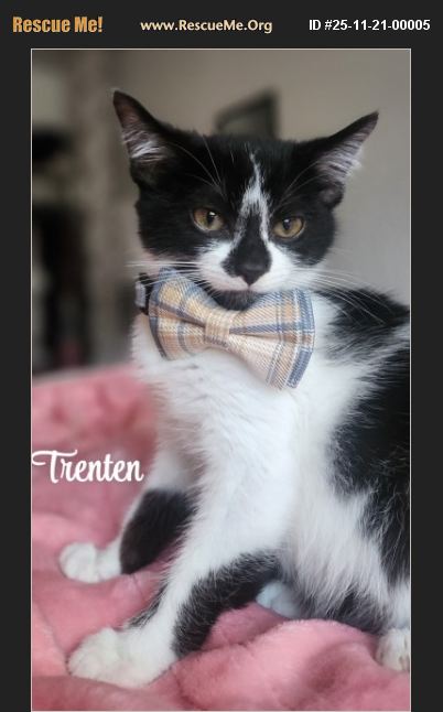 Spunky Skunky Meet Trenton - the sweetest little tuxedo with a skunk-stripe twist! Trenton is an adorable tuxedo kitten with a charming white 'Pepe Le Pew' stripe right down his nose - and just like the cartoon skunk, he's overflowing with love. He and his siblings were discovered living under an abandoned trailer with their mama. When we trapped her, we were shocked to learn she wasn't feral at all - she had been dumped with her babies. Their story could have taken a heartbreaking turn�'�| but instead, everything changed thanks to Melaina, an incredible human who devotes her time to trapping, caring for, and lovingly socializing cats so they can find the homes they deserve. Now it's Trenton's turn. This little guy is a full-blown love bug. He adores other cats, snuggles into furry friends without hesitation, and is guaranteed to be your loyal companion. His favorite cuddle spot? Right under the sheets in your bed, curled up like he's always belonged there. Trenton is ready for a forever home filled with love, warmth, and lots of snuggle time. If you're looking for a kitten with personality, heart, and an irresistible nose stripe, Trenton is your boy. Adopt Trenton and give this sweet soul the happy ending he deserves. If you are interested in meeting Trenton us a call or complete an application today! Call now 707-972-9359 or 530-570-4538 or 707-354-1211