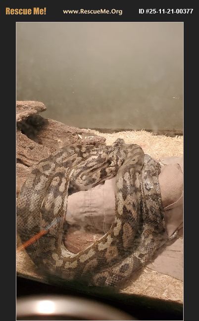 This is Zia (Zeke) and she needs a better home. She's my roommate's ex's snake and he abandoned her. We are not snake people and would like to see her go to someone who can take care of her. She doesn't seem to be living her best life. I was told she's an Australian Carpet Python by my roommate. She's 5 feet long.