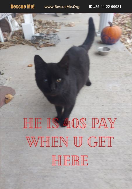This animal is available to licensed rescue groups only. Please do not enquire unless with a licensed rescue group. He has to be trained to be indoor cat we can't keep him he could die this winter pls help
