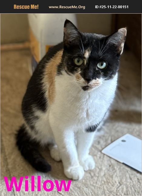 Meet Willow! Willow is a beautiful calico girl with an equally beautiful personality. She's sweet, friendly, and absolutely lovely to have around. In the home, she's a little star-well-mannered, affectionate, and great with other cats. Dogs, however, make her a bit wary, so a dog-free home or a calm, respectful canine companion would suit her best. Willow is litter box trained, spayed, microchipped, vaccinated, dewormed, and has tested negative for FIV/FeLV. Her adoption fee is $125. This charming girl is ready to brighten a home of her own-could it be yours?