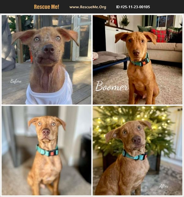 Boomer came to rescue underweight, battling severe Demodex, and carrying a scar around his chest that hints at a difficult past. But today? His skin has healed, his confidence is growing, and he's turning into a playful, joyful pup with only occasional timid moments. ���� Here's what makes Boomer amazing: �Ϭ Potty trained & crate trained �Ϭ Loves fetch and really loves to chew (Nylabones = yes, shoes = hide!) �Ϭ Knows 'sit' and often offers his paw �Ϭ Very food- and toy-motivated �Ϭ Wants to please and loves praise �Ϭ May startle occasionally but recovers quickly �Ϭ If joining a home with another dog, he'll need a patient sibling - he can be a little mouthy and bratty (classic puppy energy!)
