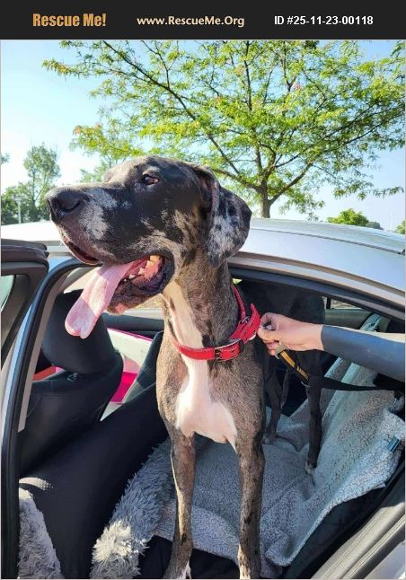 LOCATION: Pittsburgh, PA DOB: 01/19/2020 Peeta is a one-of-a-kind Great Dane with a big voice, a bigger personality, and a heart that just needs the right person to help it shine. He's around 1.5 years old, house and crate trained, and full of hilarious quirks that'll keep you laughing-like hiding his toys in couch cushions, drinking straight from the faucet (or toilet if he can beat you to it), and chatting up a storm when he wants attention, food, or just to tell you how his day's going. Peeta is smart and very trainable-he knows sit, down, shake, treat, and crate, and responds well to correction. He's muzzle trained and doesn't fight when it's time to put it on, which is helpful as he continues to work through some of his fears. He can get nervous with new people, especially men, and sometimes reacts without much warning. He's also sensitive about doorways, prolonged eye contact, and gets a little worked up when people walk by the car. He's not aggressive at heart, but he does need someone experienced who understands how to manage and support a dog with fear-based reactivity. With dogs, Peeta is figuring things out. He loves to play chase with his current foster sister, a younger female Dane, but he prefers calmer dogs and doesn't enjoy rough wrestling or high-energy chaos. He could potentially live with another respectful, relaxed dog-but would also be perfectly happy soaking up all the attention as your one and only. Cats are unknown, and he's not a good fit for a home with children due to his unpredictability and reactivity. Despite his quirks, Peeta is incredibly affectionate and loves nothing more than flopping across you on the couch for a snuggle session. His version of 'cuddling' is full-body contact and zero personal space, and he'll happily hang out with you watching TV, playing with toys, or just being near his person. He's got moderate energy-he loves to play but also knows when to settle down. Leash walks are a work in progress (he's strong!), but he's learning. He also has some mild skin issues that are improving with proper care and attention. Peeta is looking for a calm, consistent home without a lot of hustle and bustle. He'll need someone patient, experienced, and willing to work with him through slow introductions, structure, and boundaries. In return, he'll give you loyalty, laughter, and love-with a few extra sound effects along the way. If you're ready to meet a dog with personality, smarts, and a whole lot of potential, Peeta's waiting for you. ========================= To apply to adopt me, please fill out the application form! https://form.jotform.com/51994996709176 . Note: SRGDRR adopts nationwide and offers transport options to help you find your perfect match! Check out our other adoptable dogs at saverockythegreatdane.org/adopt.