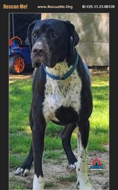 LOCATION: Minden, Louisiana DOB: 06/15/2020 How is Wilson still waiting for his forever home? It's a mystery indeed! Wilson is the kind of dog who effortlessly steals hearts with his quirky charm, sweet nature, and signature 'Willie wiggles' that make every morning brighter. A black-and-white Great Dane with a freckled bib, his expression effortlessly shifts from playfully goofy to adorably serious, creating a perfect blend of personality. For the last three years, Wilson has patiently waited for the right family to recognize just how special he is. Affectionately known as Willy, he is a gentle soul who thrives on love, though he's taken his time learning to trust and embrace affection fully. His foster mom calls him her 'baby doll' and 'special boy' for good reason-his submissive nature, soft heart, and unwavering loyalty make him an absolute gem. Willy has a few quirks that only add to his charm. He's a self-proclaimed collector, hoarding toys, towels, shoes-really, any treasures he can gather into his personal pile. And crinkly toys? They're his absolute favorite, providing endless entertainment. While he initially preferred the company of women, he's growing more confident around new people, no longer retreating to his crate but instead lounging nearby, eager to observe the world around him. He's incredibly gentle with toddlers, great with older, respectful children, and enjoys playing with other dogs. Cats? He happily ignores them, making him an easy fit for feline-friendly homes. Wilson's house manners are impeccable, though his resourceful tendencies mean he's crated when unsupervised to prevent impromptu treasure hunts. He's a dream on the leash, a perfect walking companion, though car rides aren't yet his favorite-but he's learning! His gentle, somewhat skittish nature means he'll thrive in a home with a secure six-foot fence to keep him safe. Wilson is truly one-of-a-kind, an endearing blend of silly, sweet, and soulful. He's ready to bring joy, laughter, and unconditional love to the right family-the one who sees his quirks, celebrates his softness, and welcomes him wholeheartedly. If you're looking for a companion with a heart of gold and a playful spirit, Wilson is waiting, paws at the ready, to finally head home. ========================= To apply to adopt me, please fill out the application form! https://form.jotform.com/51994996709176 . Note: Wilson must be adopted locally OR adopter must be willing to drive to pick him up; he is to skittish to go commercial or be handed off to multiple drivers.