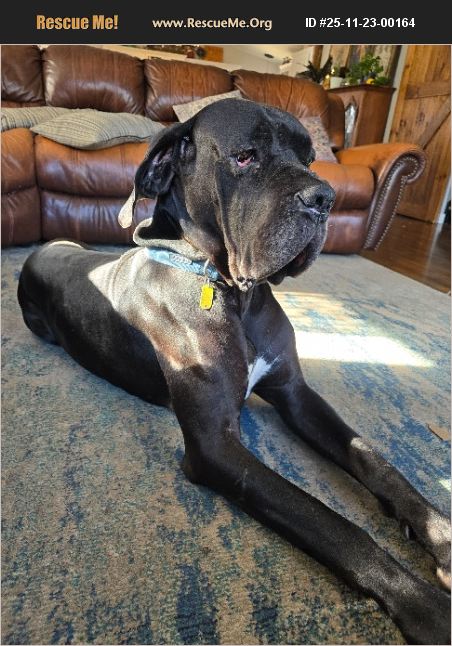 Frank is a 4 year old Great Dane looking for a new couch. He has good house manners and has been raised with young children. He is NOT good with cats and livestock and is very protective of his home so needs slow & proper introduction to strangers entering. He is not crate/kennel trained and would appreciate a large, safely fenced yard to play in.