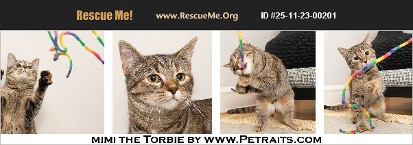 Please Share�'�| Chicago, IL - Adopt Mimi the Acrobatic and Fun Torbie Kitten Mimi is an adorable six-month-old tortoiseshell/tabby (Torbie) kitten looking for a loving guardian. Born May 8th, this fun acrobatic kitten loves to play and loves to eat! Playing with her with anything that moves and feeding her treats will soon make you her best friend. She is fine with other cats and dogs after the normal introduction protocol. Mimi is very healthy, spayed, dewormed, up-to-date on rabies and distemper vaccinations, fecal-tested negative and virus-tested negative for FIV/Felv, and microchipped. She is well-behaved in the home, uses her litter box and is not a picky eater. To meet and possibly adopt Mimi, please fill out an adoption application https://friendsofpetraits.com/cat-adoption-application/ After the application is complete, please contact [email protected] to schedule an appointment to meet her. Her adoption fee of $175 benefits the Friends of Petraits Rescue. She is being fostered in Chicago's Rogers Park neighborhood.