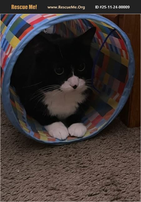3yr old male handsome tuxedo cat. Very lovable, wants a lot of love and attention. Great with kids. Very vocal.
