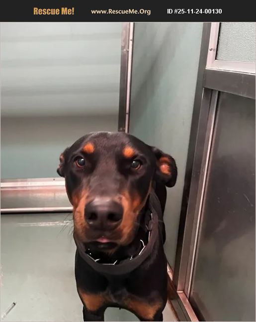 ID#A547548 I am described as a male, black and brown Doberman Pinscher mix. The shelter thinks I am about 1 year. I have been at the shelter since Nov 21, 2025 and I may be available for adoption on Dec 02, 2025 at 11:31AM.