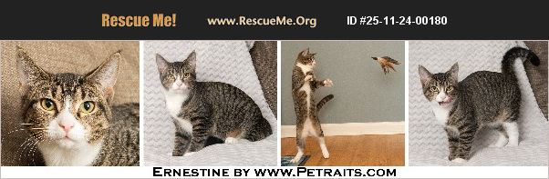 Ernestine is a sweet, fun and playful six-month-old, six-pound, female, brown tabby tuxedo polydactyl (extra toed) kitten looking for a loving guardian. Ernestine is shy at first, but lives in a foster home with her polydactyl tuxedo sister Polyanna as well as tortoiseshell foster sisters Rosemary and Angelica. She loves other cats and is fine with dogs. Ernestine is well-behaved in the home, uses her litter box, loves her treats, and loves jumping for a cat dancer or feather toy, or rolling with her toys! Ernie is very healthy, dewormed, spayed, up to date on rabies and distemper vaccines, microchipped and fecal and virus tested negative. To meet and possibly adopt Ernestine or any of her foster siblings please fill out an adoption application https://friendsofpetraits.com/cat-adoption-application/ After the application is complete, please contact [email protected] to schedule an appointment to meet her. Her adoption fee of $175 (or $300 as a pair) benefits the Friends of Petraits Rescue. She is being fostered in Chicago's Andersonville neighborhood.