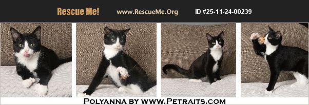 Polyanna is a fun, friendly and playful six-month-old, six-pound, female, black and white tuxedo polydactyl (extra-toed) kitten looking for a loving guardian. Polyanna lives with her sister Ernestine, a brown tabby polydactyl kitten, as well as her tortoiseshell foster sisters Rosemary and Angelica in a loving foster home where she gets along with other cats and dogs. Polyanna is well-behaved in the home, uses her litter box and loves jumping for a cat dancer or feather toy, or rolling on her cat scratcher or running for her toys! She is very healthy, spayed, up to date on rabies and distemper vaccines, microchipped, dewormed, fecal and virus tested negative. To meet and possibly adopt Polyanna and all her foster siblings please fill out an adoption application https://friendsofpetraits.com/cat-adoption-application/ After the application is complete, please contact [email protected] to schedule an appointment to meet her. Her adoption fee of $175 (or $300 as a pair) benefits the Friends of Petraits Rescue. She is being fostered in Chicago's Andersonville neighborhood.
