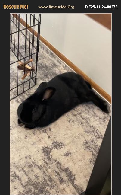 I like to do big dramatic flops! I like to take treats from your hand. I'm a great bunny for calm households. I'm a great bunny for experienced bunny owners. I don't like: loud noises, I am: brave, curious, friendly, litter box trained, playful, shy, smart, sweet, tidy, I like: cats, napping, to be pet, to binky, to explore, to run, Zero's story is one of resilience and mystery. On a freezing, zero-degree day, this striking black rabbit was found, a lone figure against the harsh winter backdrop. Despite his chilling beginnings, Zero's heart is warm and full of life. Zero does need a calm household that will allow him to open up on his own terms. He's a shy rabbit with so much love to give. Fur like silk and a heart of gold. He loves his cat foster siblings as well as his stuffed lamb chop. Zero would be a wonderful husbun or just a partner in general. He loves his treats and is an overall tidy rabbit. Black Male Satin 5.19 lbs on Nov 18, 2025