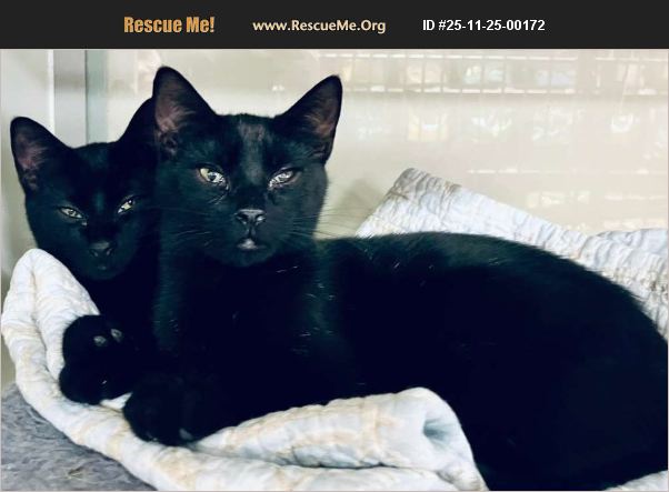 Perseus and Minerva - two black beauties. As soon as you pick them up, they snuggle into you and start purring. They were fostered in a loving home where they ran around chasing each other and then jumped on foster mom's lap for extra lap time. These two are sure to make your home happier!