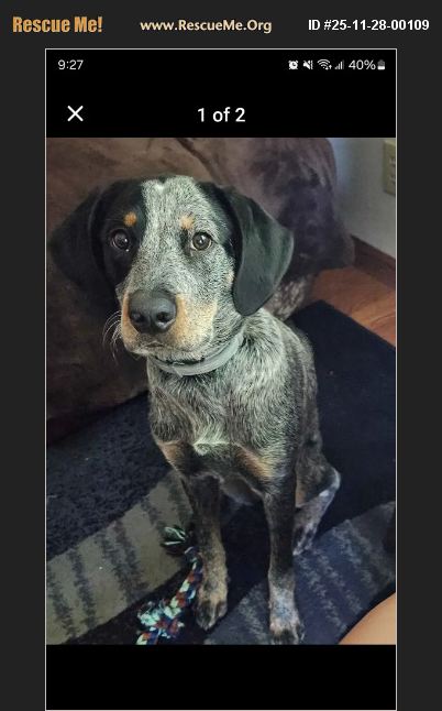 Sadie is a blue heeler and hound mix. She is house trained and loves to go outside. She thinks she's a lap puppy. She loves all people and animals. She is in need for a new home due to me moving because im pregnant and im not aloud to have animals.