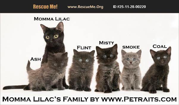 Momma Lilac is a gorgeous two-year-old, petite (six-pound), golden-eyed black cat looking for a loving guardian along with her five 5-week-old fluffy kittens. They'll be ready for adoption in December. Ash and Coal are male; Misty, Flint and Smoke are female. They are very healthy and playful, dewormed, and will be fully-vetted prior to adoption in December. They are using their litter box and eating well, while still also nursing. To meet and possibly adopt Momma Lilac and her litter, please fill out an adoption application https://friendsofpetraits.com/cat-adoption-application/ Ideally the family will be adopted in pairs. Although if there are other felines in the home, we'll consider those applicants as well. After the application is complete, please contact [email protected] to schedule an appointment to meet the family. Their adoption fee of $175 each (or two for $300) benefits the Friends of Petraits Rescue. They are being fostered in Chicago's Andersonville neighborhood.