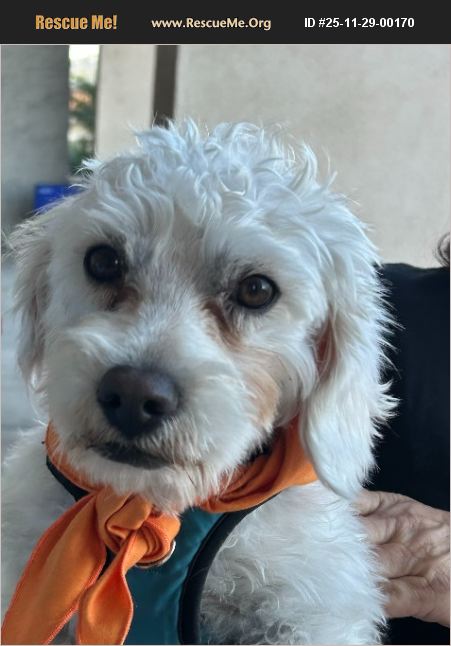 Biscuit is between 3-4 years old and weighs 14 pounds. He is very sweet and friendly, poodle mix, non shedding