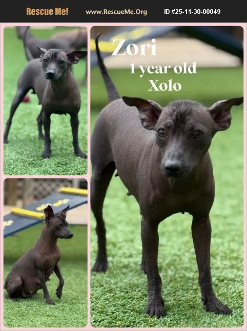 Zori is a Xoloitzcuintle/Mexican Hairlessis. Zori is the kind of girl who seems to glow from the inside out. Sweet, loving, and wonderfully playful, she approaches the world with curiosity and a gentle spirit that wins people over instantly. Whether she's trotting by your side, happily tossing around her favorite toy, or curling up for a quiet cuddle, Zori does it all with a softness that feels like sunshine. At just a year old, she's the perfect blend of fun energy and an old soul's warmth. She greets every new day with joy, and every new person with hope. Once she trusts you-and it doesn't take long-she'll show you her goofy side, her affectionate side, and the part of her heart that she saves for 'her people.' Zori is ready for a family who will cherish her for the treasure she is. In return, she'll give you loyalty, laughter, and the kind of love that makes a house feel like home. PLEASE NOTE: All your current pets must be spayed/neutered, vaccinated and on heartworm prevention to adopt from Polka Dogz. We only adopt in Florida. All adoption fees go to help all the dogs in the rescue, some of which require extensive medical care. Thank you for caring for the greater good. Adoption fee is $500 and you can adopt me at www.polkadogz.org.