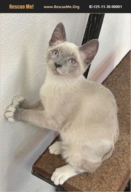 Odette is a Female DSH/Siamese mix. DOB: September of 2025 Adoption fee: $100 I am an overly friendly girl. At this time, I am an in-your-face kitten. I am rambunctious, loving, at times cuddly, and can be persistent for what I want. I give nose kisses, and love shoelaces. I am a talker and will make sure you hear my voice when I am seeking attention or treats and at dinner time. I should do well with children 8 years and older which are respectful of me. I should do well with another cat, which doesn't mind a frisky kitten. I should adapt to a dog with a slow, positive introduction. I will make a great companion for the right home.