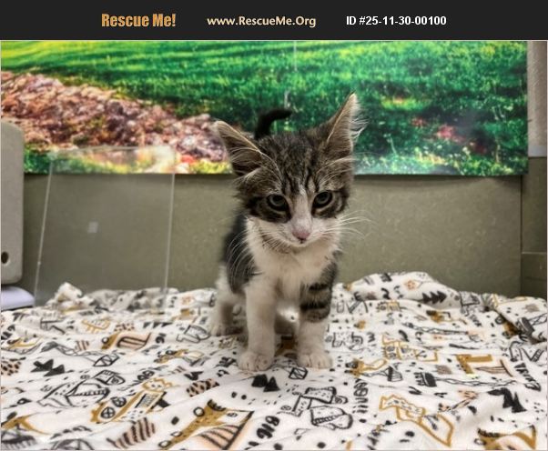 I am described as a female, brown tabby and white Domestic Mediumhair mix. The shelter thinks I am about 4 months old I weigh approximately 2.80 lbs. I have been at the shelter since Nov 25, 2025 and I may be available for adoption on Dec 04, 2025 at 10:59AM.