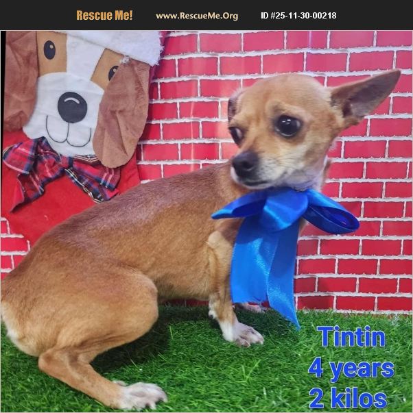 Little TinTin is joining TRACS after a great adventure. He is a Tijuana, Mexico, dog who was rescued by a nice lady who got him up to the US and sent him on to us for his new home. He is a 4 year old chihuahua boy who is a teeny little guy of 5 pounds and will fit in your purse. He is neutered and vaccinated, has had a dental done, and will come with a microchip too. He is very people friendly and dog friendly, having been raised on the streets of Mexico and needing to have lots of friends. This guy is ready to go to a new home that can teach him to speak dog English. His adoption fee helps cover his medical expense and his long trip up here from Mexico. He can be adopted for $450. If interested, please fill out an application from our website. He will be here on the 7th of December and ready to go on the 8th.