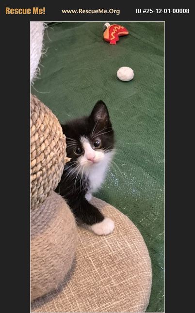 Kittens are available for adoption in mid December. This little guy can be adopted with a sibling or if there is another young cat in the home. All vetting is included in the adoption donation which covers our efforts to save lives.