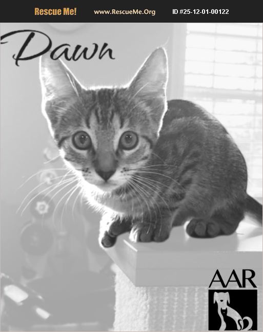 Dawn is a very busy little kitten who gets along with everyone. She plays hard, loves hard, and is a ball of energy. Dawn loves playing sneak attack from her tunnel toy and will pounce on anyone or anything passing by. Come meet this cutie with her giant pointy ears!