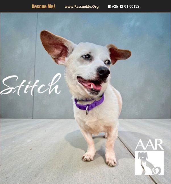 Stitch is the kind of dog who reminds you to slow down, breathe, and enjoy the simple pleasures in life. He's happiest lounging right next to you, settling in for cozy naps, and soaking up all the affection you're willing to give. His calm, gentle nature makes him the perfect companion for anyone looking for a peaceful, loving friend. His rescuer shared that he got along beautifully with her big dogs, proving that this sweet old soul has plenty of kindness to go around. If you're ready to share your home with a mellow, affectionate companion, Stitch would love nothing more than to spend his golden years by your side. DOB: 11/9/16 14 lbs. AAR does not transport for adoption.