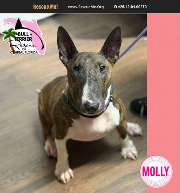 This sweet girl comes from a rural shelter in St. Landry Parish, Louisiana. She sat & waited for rescue so we stepped in. Molly is 5 years old, 45lbs, spayed & healthy. She has a very sweet personality. Learn more about our adoption process and check us out on Facebook and IG. www.BullTerrierRescueOfCentralFL.org Bull Terrier Rescue of Central Florida, Inc.