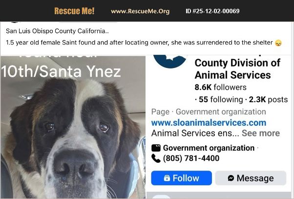 PLEASE CALL COUNTY DIRECTLY AT 805-781-4400 TO ADOPT urgent