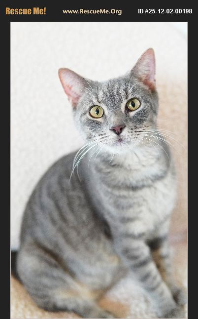 Gorgeous light grey and cream colored tabby girl, Kiko is mellow, sweet and loving. Pretty low key, she just wants to be loved. Kiko will lean into chin and cheek rubs - she enjoys being pet.and enjoys your company. A wonderful companion, Kiko will grace your home with her sweet and lovely presence - she's a true beauty inside and out. She's such a good girl! Kiko is spayed, microchipped, had rabies and fvrcp vaccinations, deworming protocol and is on a monthly flea preventative revolution plus. She tested negative for the feline leukemia virus and feline immunodeficiency virus. Approximate DOB is 3.15.2024. If interested in meeting and possibly adopting Kiko, please ask us for an adoption interest form. Then we'll set up a meet and greet. Thank you for considering sweet Kiko.