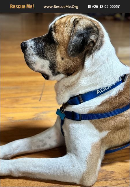 Barney wants ALL the loving and for you to fatten him up a bit with peanut butter and meats! He loves to romp outdoors and is a perfect gentleman on leash so long as you redirect from squirrels. Classic gentle giant guardian. He will need patience for training and room (outside or in) to play. He is in a neuter-recovery foster with me, but will go back soon to an overcrowded shelter if not adopted or fostered.