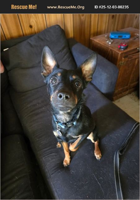 BASIC FACTS Breed: Min Pin mix Color: Black & Tan Age: 2 years Gender: male, neutered Size: small, 13 pounds House-trained: Yes Crate trained: Yes Good with Kids: Yes Good with Dogs: Yes Good with Cats: Yes Concerns: can resource guard - sometimes toys, sometimes people (he was very protective of the 9-year-old in the home) BIOGRAPHY Meet Kane! Kane came into rescue from a busy, loud dog pound. He was stressed and frightened when he was there. Since coming into rescue, he has blossomed. He bonded quickly with the 9-year-old in his temporary foster home. He respected the cat in the home as well. Kane is playful and active. He's a young boy who needs to be kept busy. He needs leash walks or a fenced yard to run out his energy. He can be possessive over toys or people at times. He has been a delight in his foster home. He plays with the other dogs as well as both of the adults. He enjoys cuddles and lots of love too! Kane is neutered, vaccinated, microchipped, and heartworm negative. He is being fostered in Natrona Heights, PA and is available for an adoption fee of $400.00. If you are interested in adopting, please submit an application online at www.sophiasgracefoundation.org ***Petfinder/ RescueMe inquiries are NOT considered applications and may not be responded to***