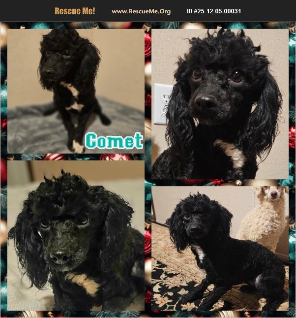 Meet Comet! Breed: toy poodle. Age: est 1 year. Weight: 8.4lbs. Training: crate trained, working on leash and house training. He has not had many life experiences and will need continued training. Good with other dogs/cats? Yes. Good with adults/kids? Yes. Personality: shy/submissive, but friendly. He warms up to be affectionate and playful. He hasn't had many life experiences and will need a patient and understanding home as he adjusts to life as a companion. He would do best with a confident canine companion in his home to show him the ropes! Reason for rescue: breeder release, retiring. He is neutered, microchipped, heartworm negative, and current on vaccinations and preventatives. If interested in adding this sweet baby to your family, please message for an adoption application! Adoption fee: $350 PLEASE NOTE: We do adopt out of state, however we do not transport. We require an in person meet and greet before finalizing adoption.